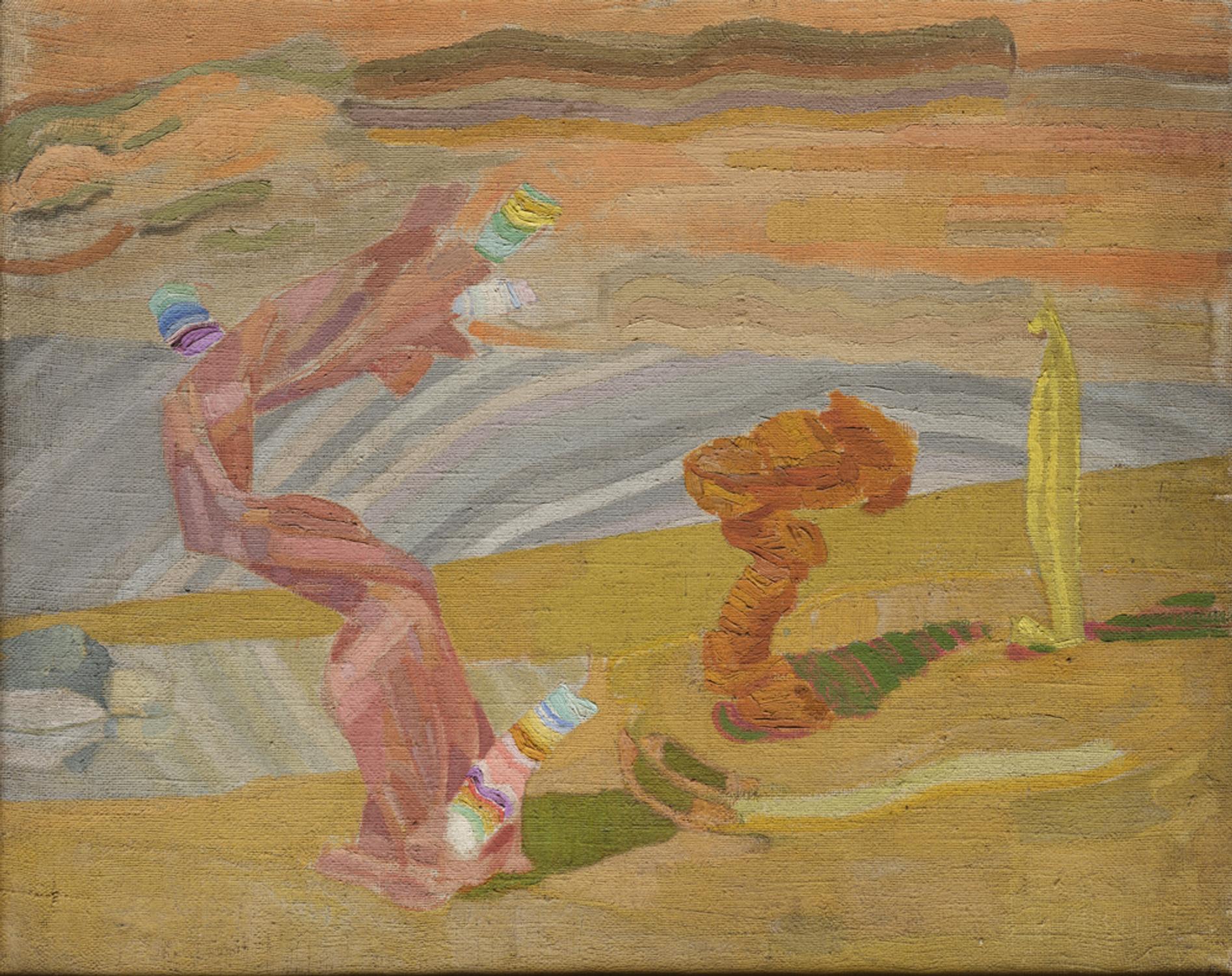 À gauche : Sarah Lipska, Silhouettes sur la plage, © Sarah Lipska. Musées de la ville de Boulogne-Billancourt - Photo Thierry Ollivier / à droite : L’homme au chapeau mou © Sarah Lipska. Musées de la ville de Boulogne-Billancourt - Photo Philippe Fuzeau