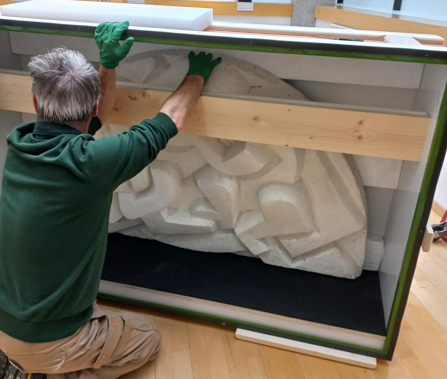 Raoul Lamourdedieu, Fontaine de la Porte d'auteuil et Joachim Costa, Jeune Ariégeoise, lors de leur emballage au musée des Années 30 et leur installation au musée Zadkine.